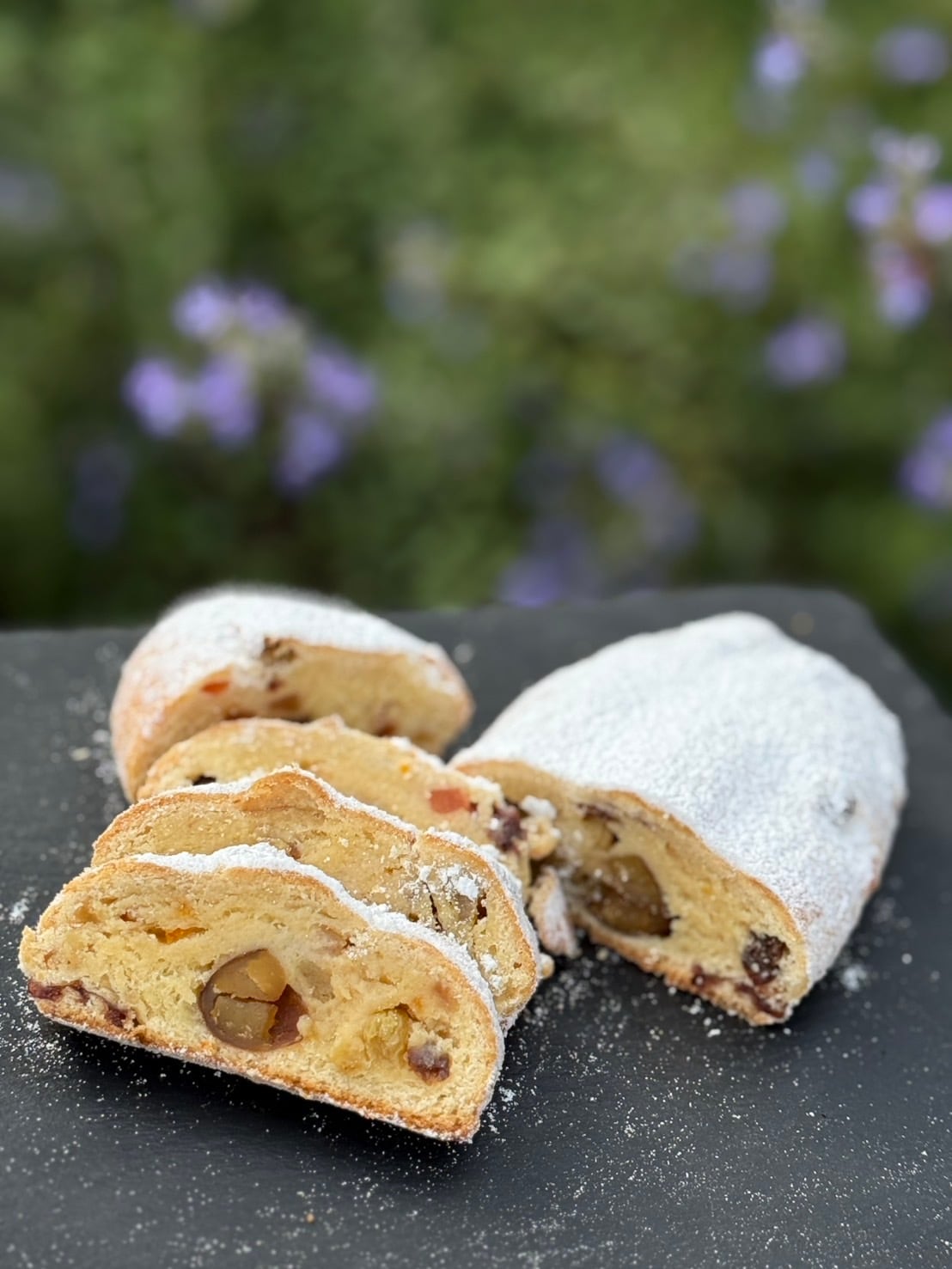 シュトーレンはそのまま食べても十分おいしいですが、スパイス感多めが好きな方はお好みのスパイス(シナモンなど)を追加でトッピングするのもおすすめです。